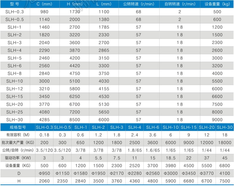 2)混合能力大,裝料系數(shù)比滾筒式提高20——30%,比V型混合機提高25——40%。